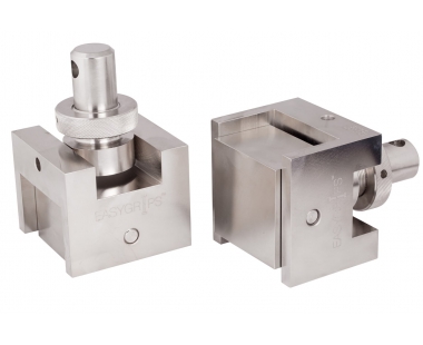 Оснастка EasyGrips™, EG-K-7017, предназначена для определения предела прочности на растяжение перпендикулярно к плоскости "сэндвич"-конструкций согласно требованиям ГОСТ 56783-2019, ASTM С297. Приспособление состоит из двух шарнирных адаптеров, к которым фиксируются контактные блоки, с приклеенными сотовыми конструкциями. Благодаря шарнирным адаптерам обеспечивается выравнивание цепочки нагружения для исключения перекоса при испытании. Для повышения эффективности  испытаний оснастка комплектуется пятью парами контактных блоков, чтобы вы могли провести испытаний всей серии образцов сразу.