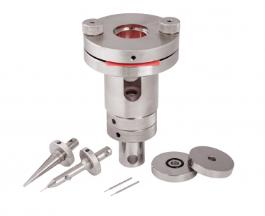 - Универсальная конструкция со сменными опорами диаметром 1 мм и 4 мм или 4 и 10 мм и давящей оправкой диаметром 10 мм.